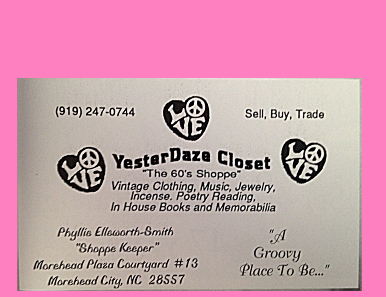 On September 29, 1995 Sherry White, the Entertainment Editor of the Carteret County News Times, interviewed Phyllis about Yesterdaze Closet (photos by Catherine Whittenburg). The article totally captures Phyllis's philosophy of life...she was always learning and growing from her experiences, and for those who knew her, she would jump at the chance to share her experiences with anyone who would listen. Click here for a pdf file of the newspaper article.