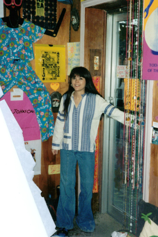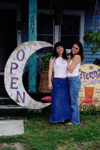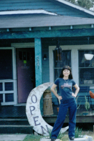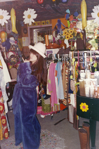 As any enthusiastic business owner, Phyllis wanted to "dress things up", so she planted some sunflowers around the tree next to the sidewalk in front of the shoppe. They started to bloom several weeks later and looked so beautiful that she had to take a picture. It really set her place apart from the other business's on Arendell Street and tied in so well with the flower-power stickers inside and on the window outside her shoppe.